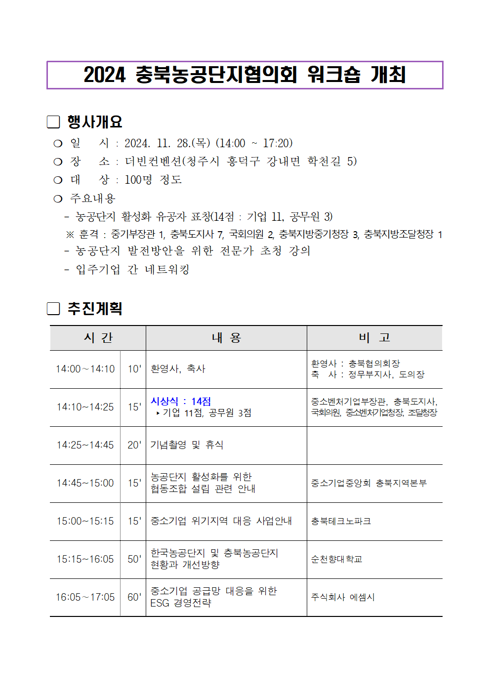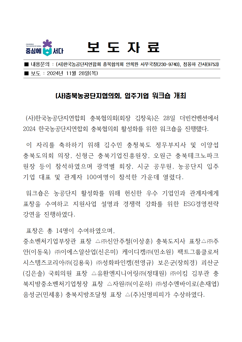 | (사)충북농공단지협의회, 입주기업 워크숍 개최 | |||||