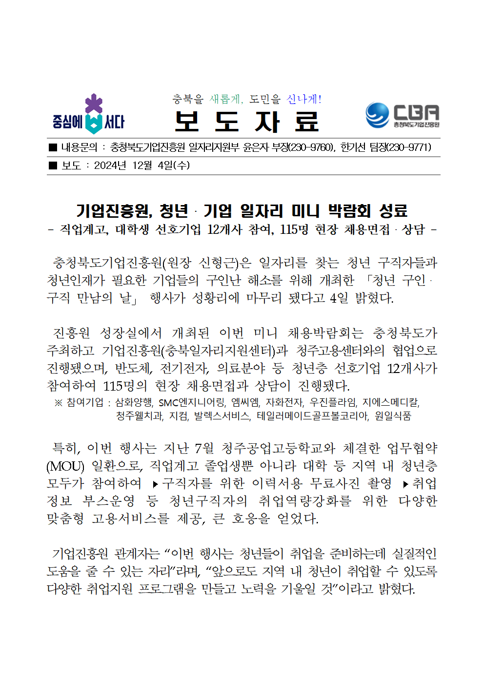 | 기업진흥원, 청년・기업 일자리 미니 박람회 성료 | |||||