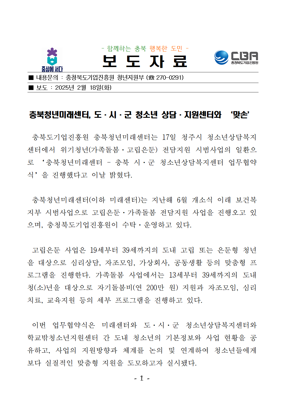 | 충북청년미래센터, 도·시·군 청소년 상담·지원센터와 '맞손' | |||||