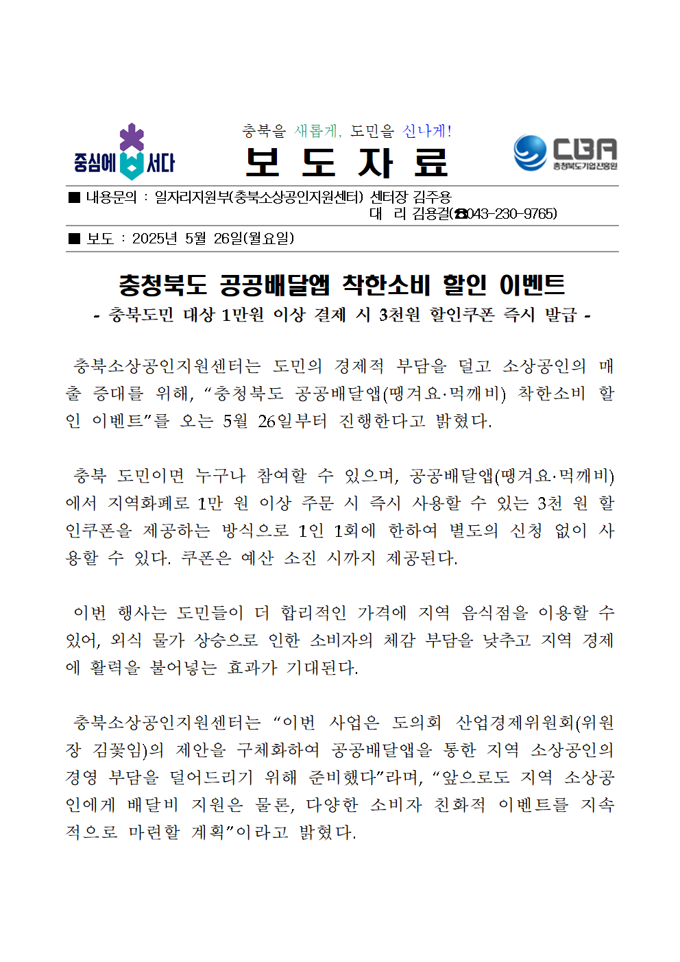 | 충청북도 공공배달앱 착한소비 할인 이벤트 진행 | |||||