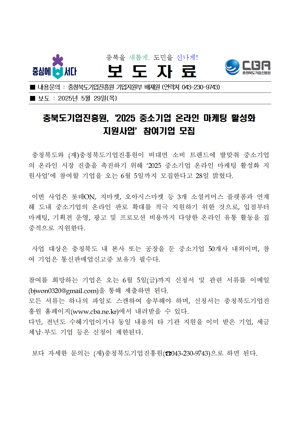 | 충북기업진흥원, ‘2025 중소기업 온라인 마케팅 활성화 지원사업’ 참여기업 모집 | |||||