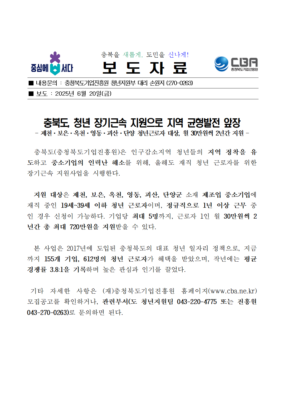 | 충북도, 청년 장기근속 지원으로 지역 균형발전 앞장 | |||||