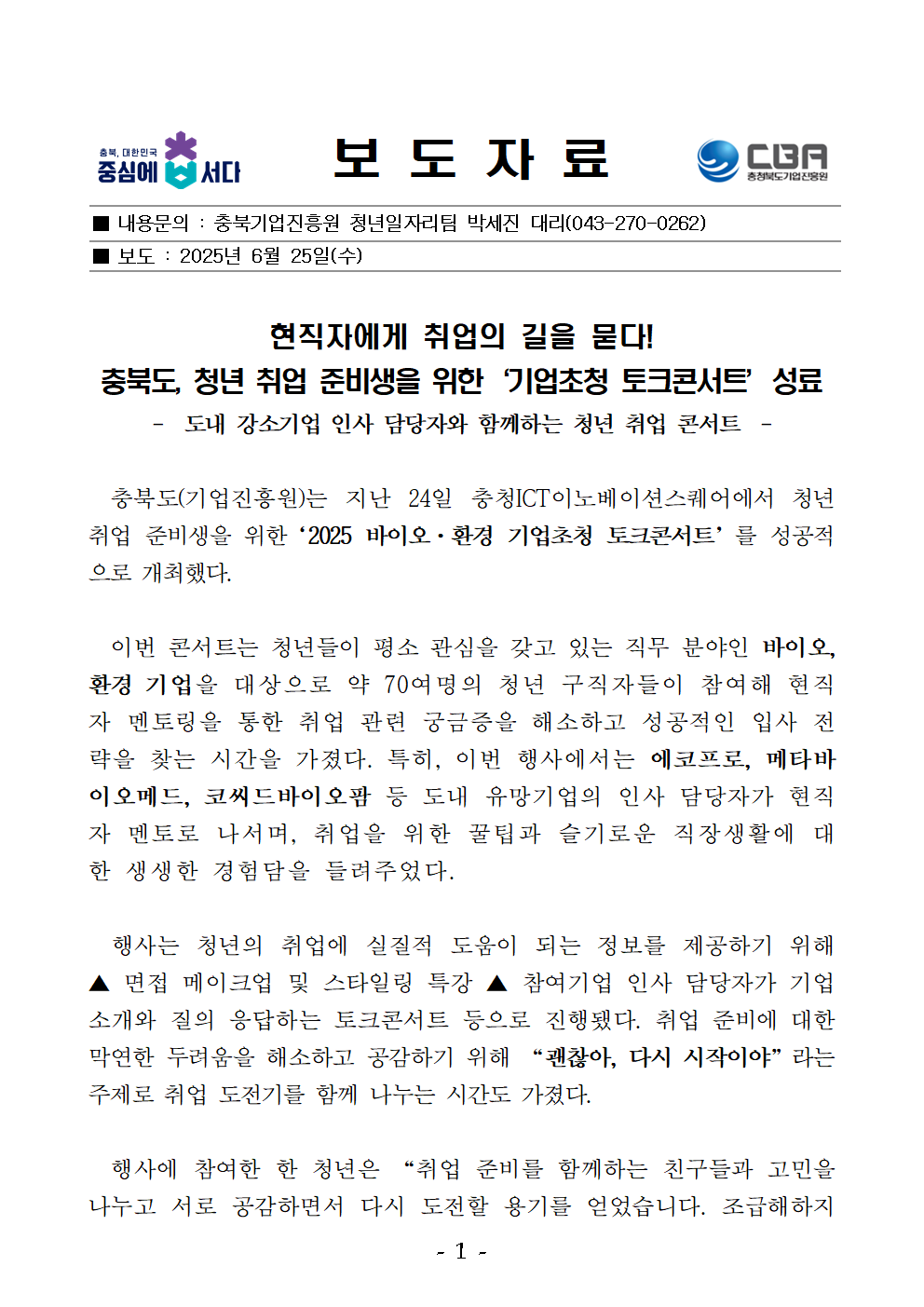 | 충북도, 청년 취업 준비생을 위한 ‘기업초청 토크콘서트’ 성료 | |||||