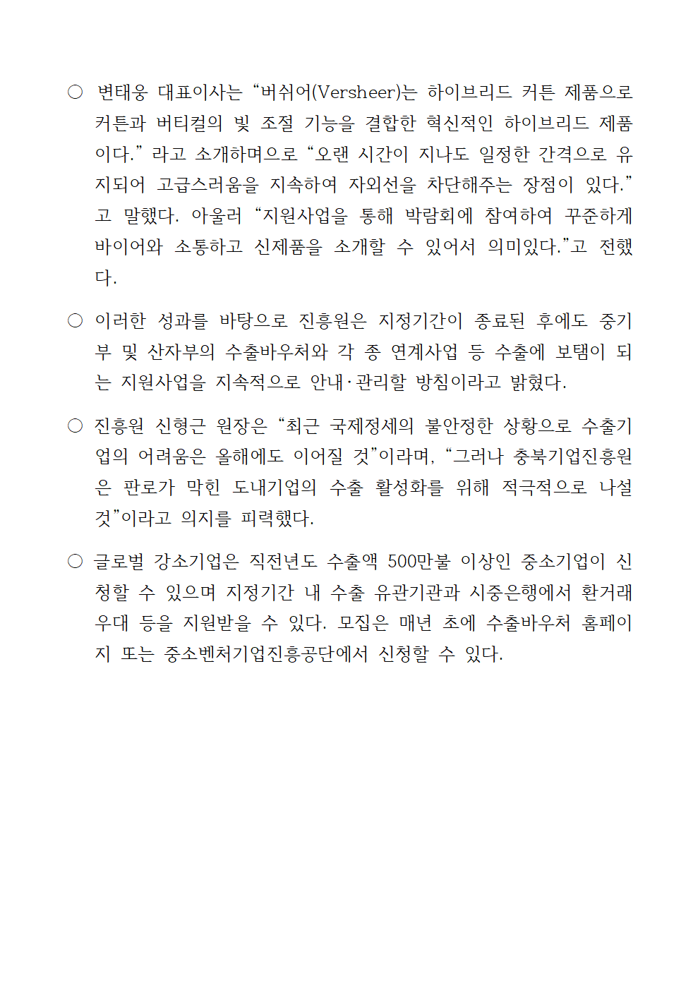 | 이전글 | 충북기업진흥원, 충북원예농협과 농촌융복합산업 우수제품 판매전 개최 |