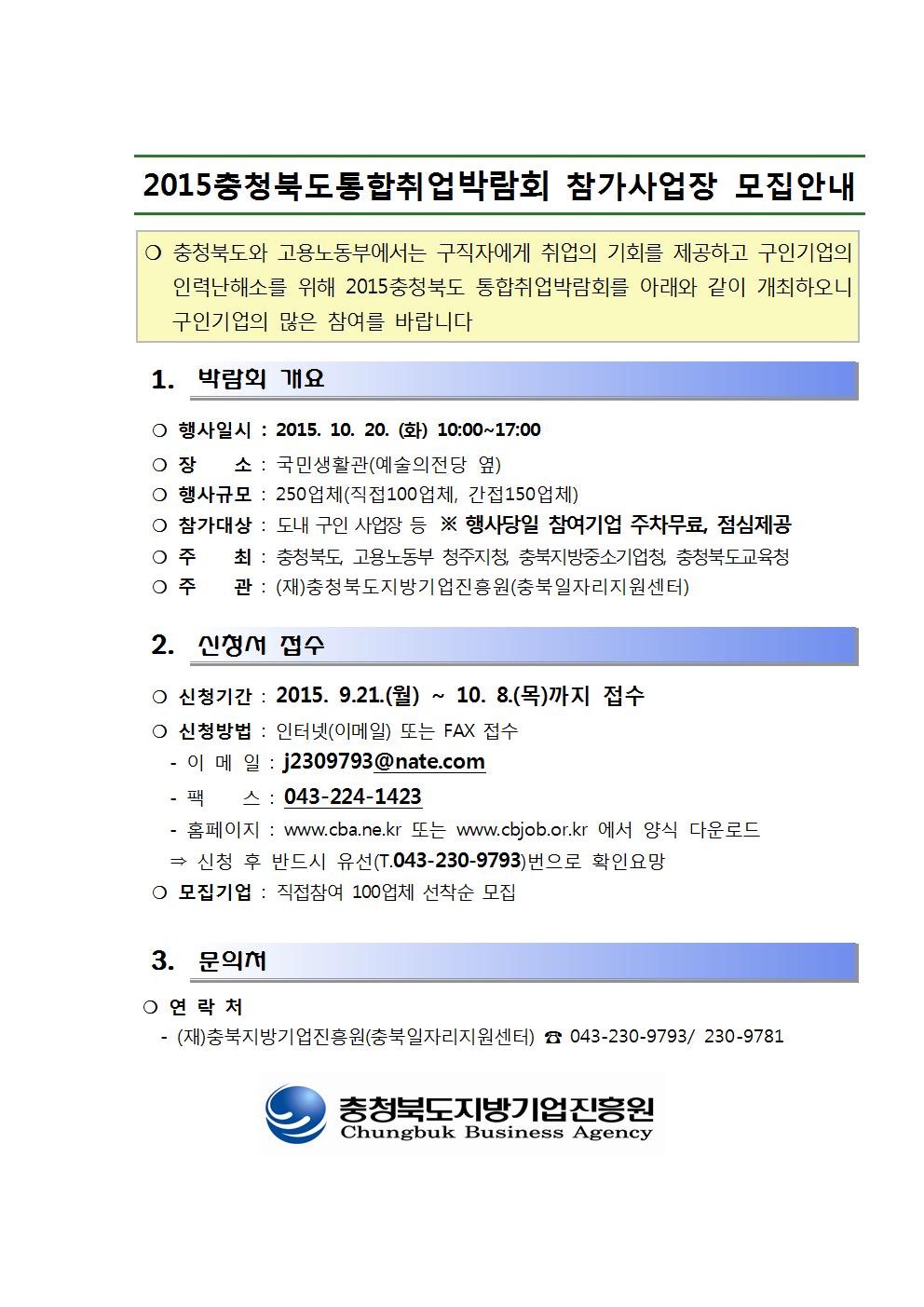 | 2015 충청북도 통합취업박람회 참가사업장 모집안내 | |||||