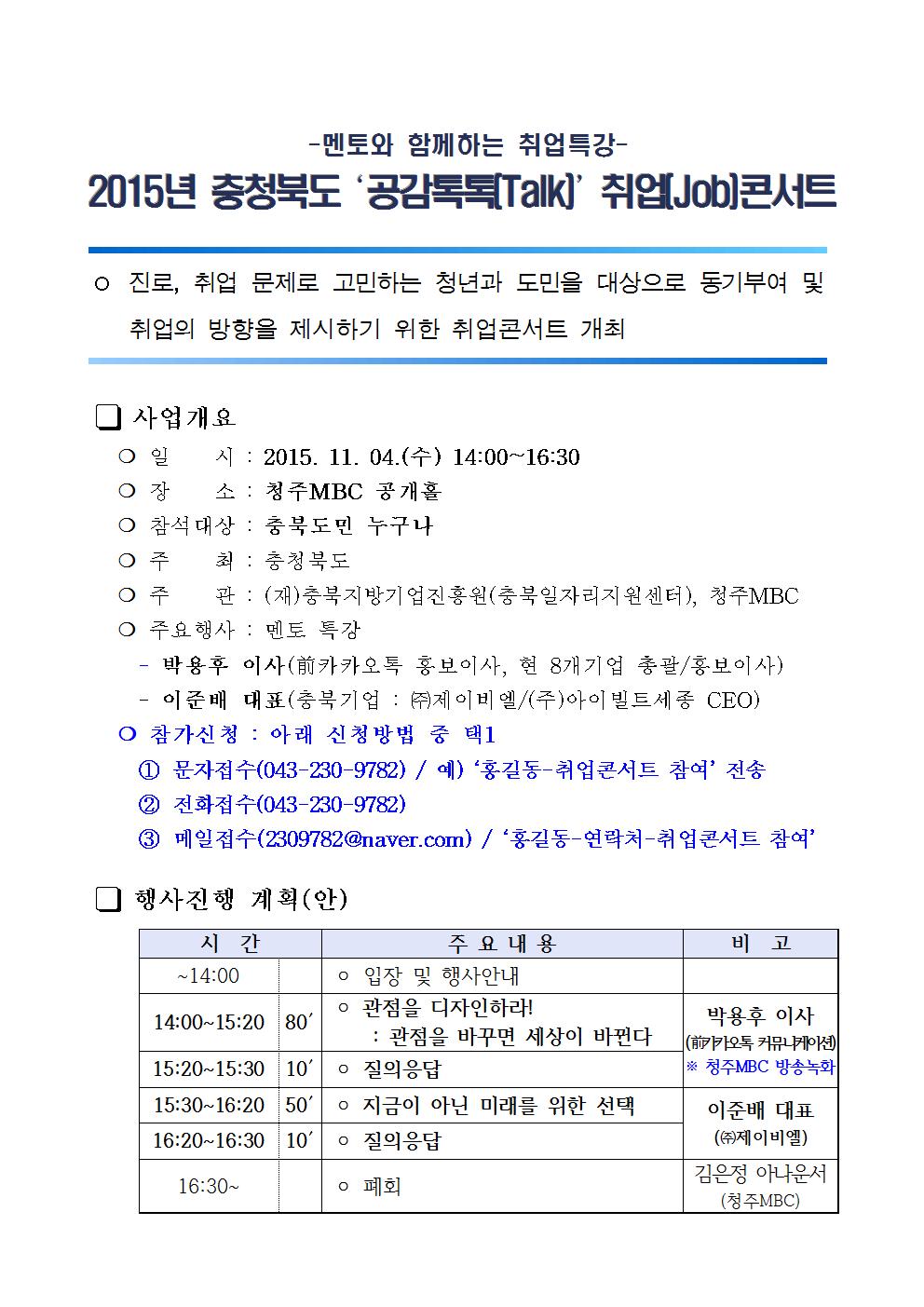 | '공감톡톡(Talk)' 취업콘서트 개최(11/4) | |||||