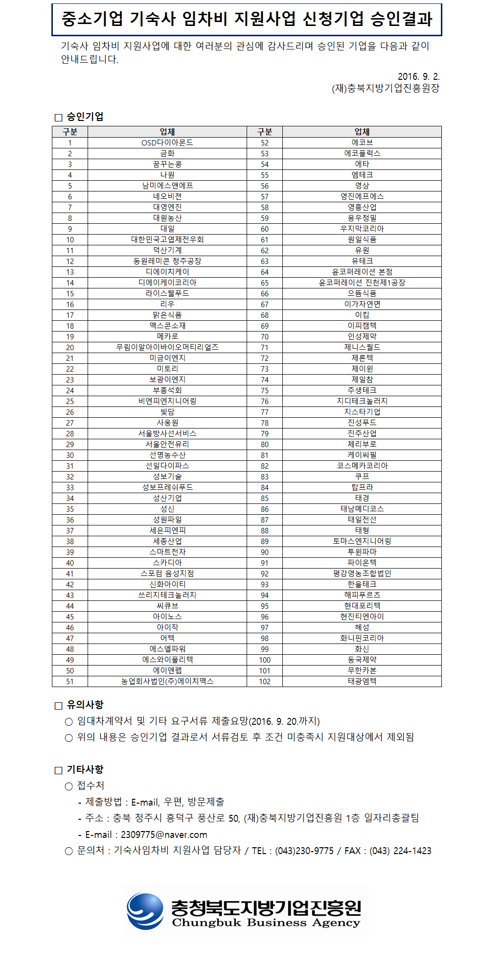 | 중소기업 기숙사임차비 지원사업 1차 승인기업 결과안내 | |||||