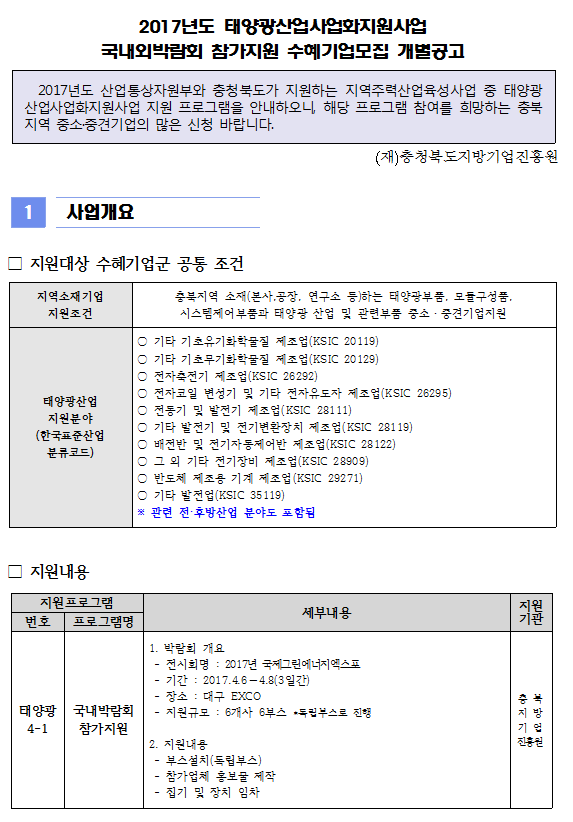 | 2017년 태양광사업화지원사업 국내외박람회 참가지원 공고 | |||||
