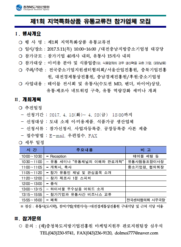 제1회 지역특화상품 유통교류전 참가업체 모집
