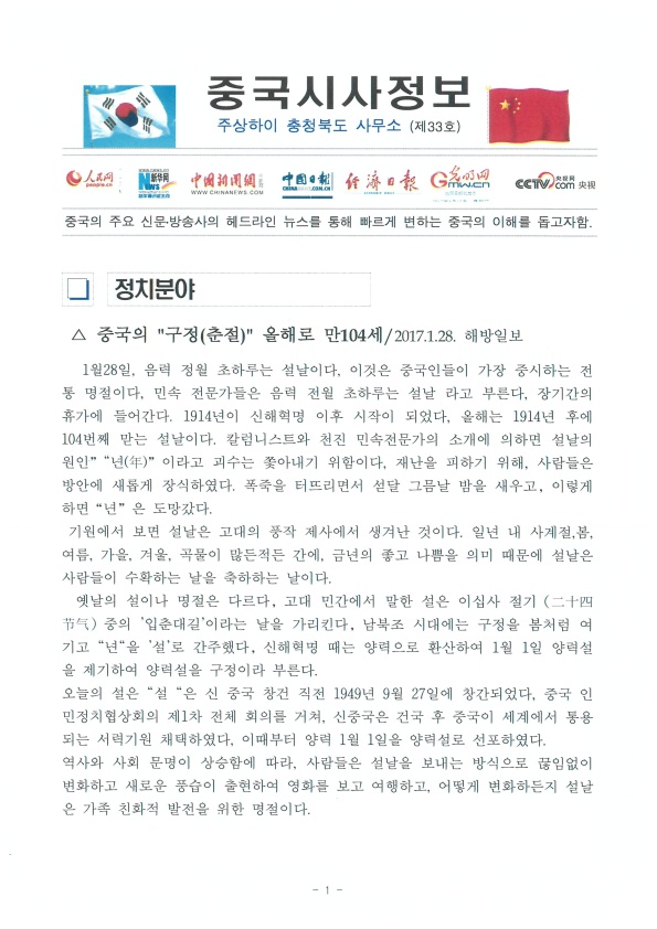| 중국시사정보 주상하이 충청북도 사무소 (제33호) | |||||
