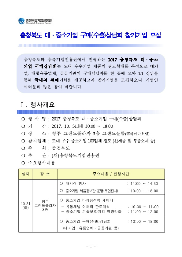 | 2017 충청북도 대중소기업 구매(수출)상담회 참가기업 모집 | |||||
