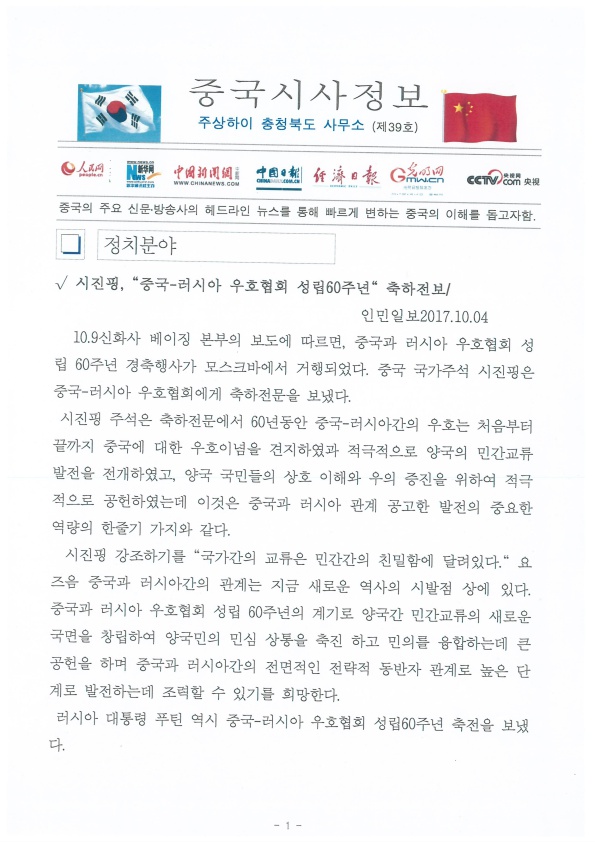 중국시사정보 주상하이 충청북도 사무소 (제39호)