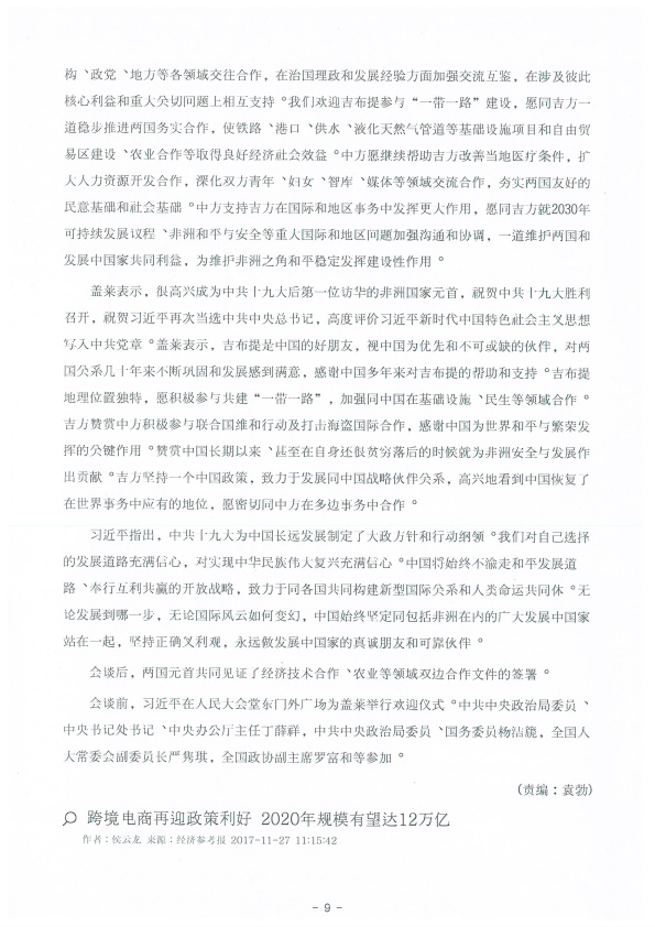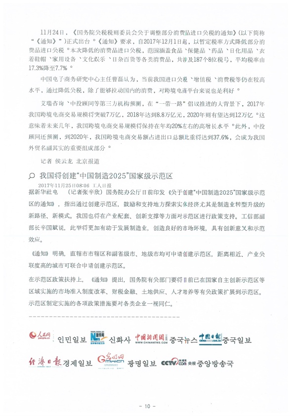 2017년도 중국의 주요언론 들이 뽑은 10대뉴스