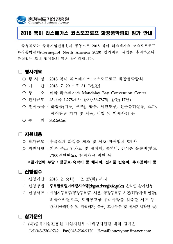 | 2018 북미 라스베가스 코스모프로프 화장품박람회 참가 안내 | |||||