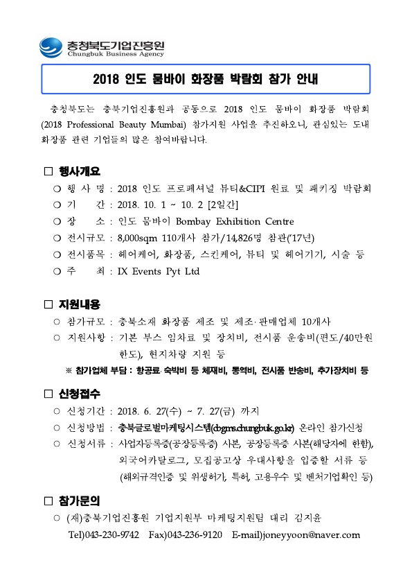 | 2018 인도 뭄바이 화장품 박람회 참가기업 모집안내 | |||||