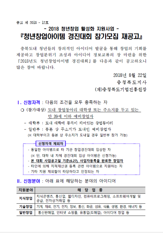 | 2018년도 청년 창업아이템 경진대회 참가모집 재공고 | |||||