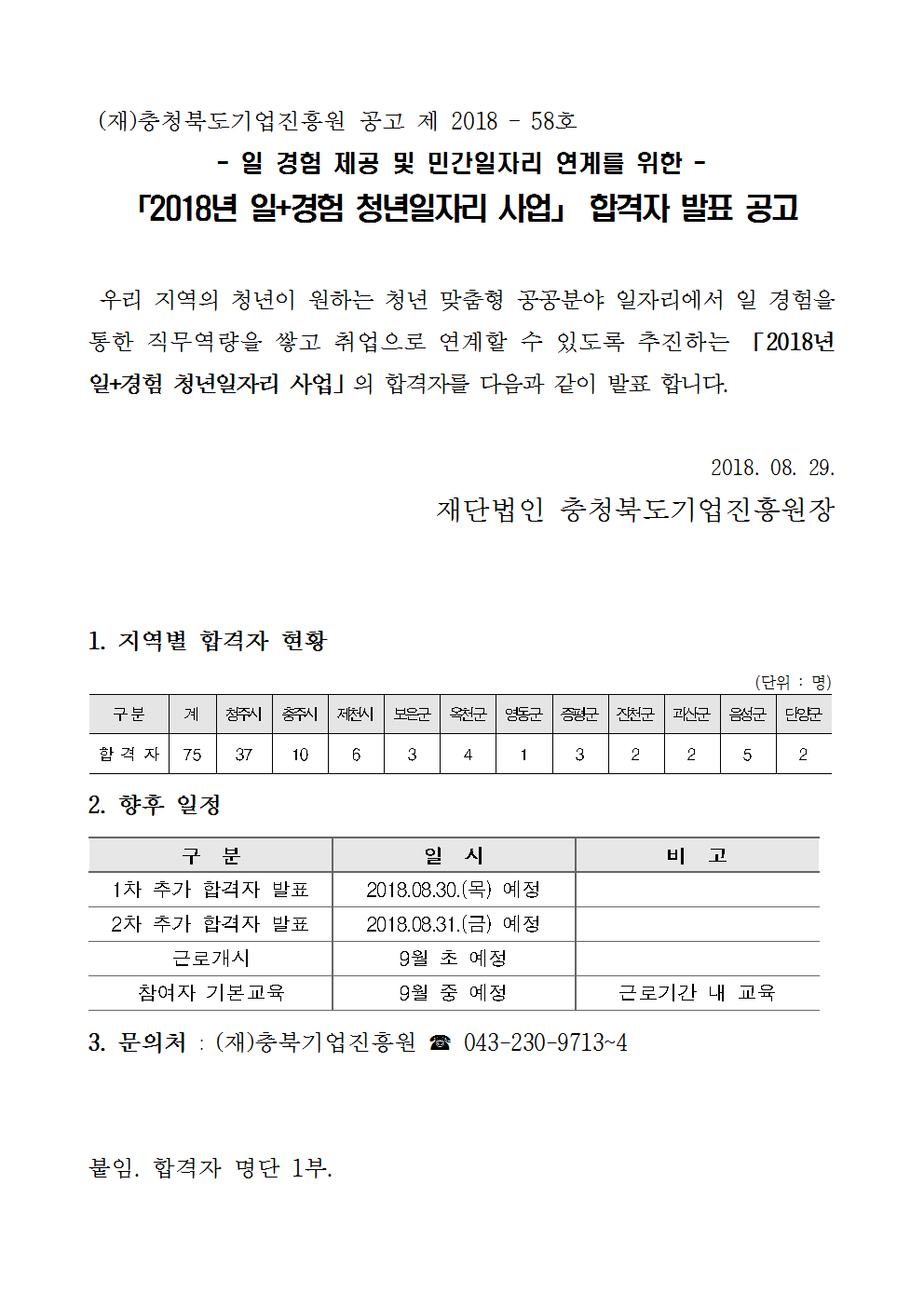 | 2018년 일+경험 청년일자리 사업 1차 합격자 발표 | |||||
