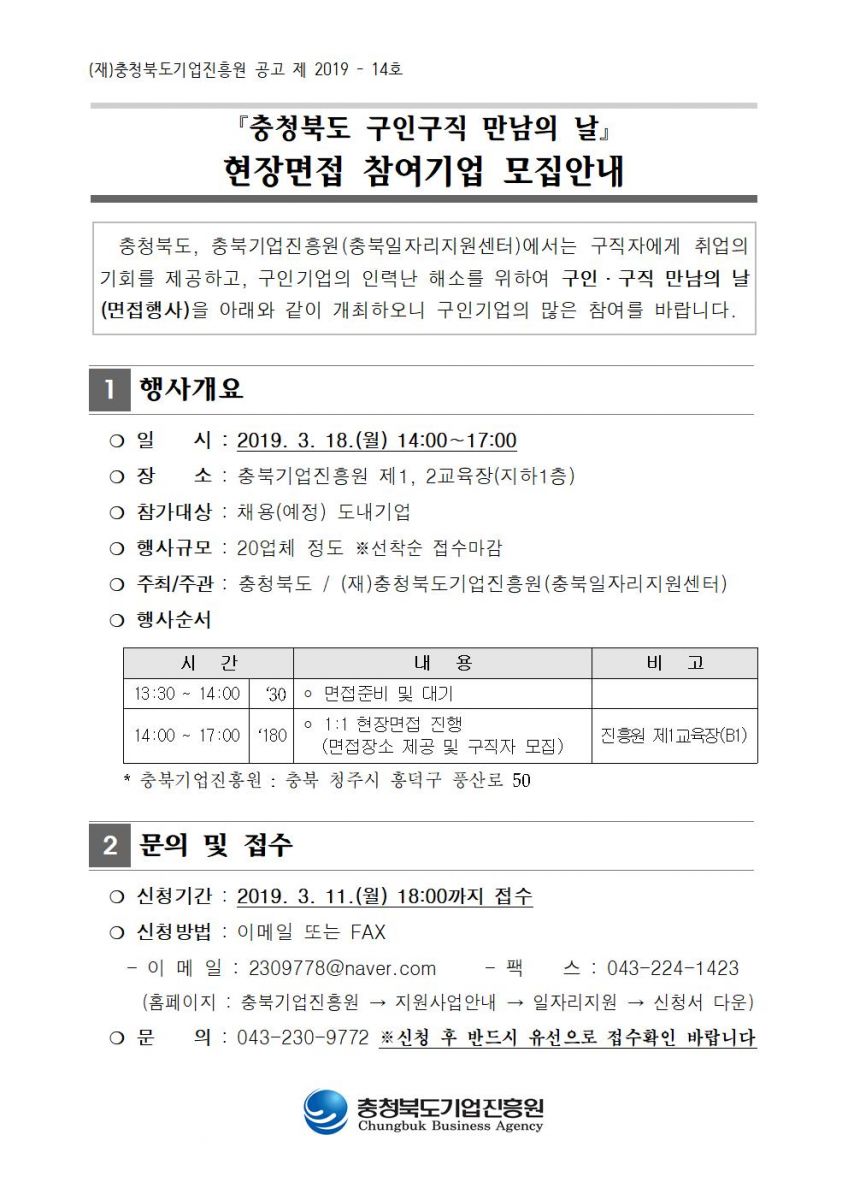 | 충청북도 구인구직 만남의날 채용(예정)기업 모집안내 | |||||