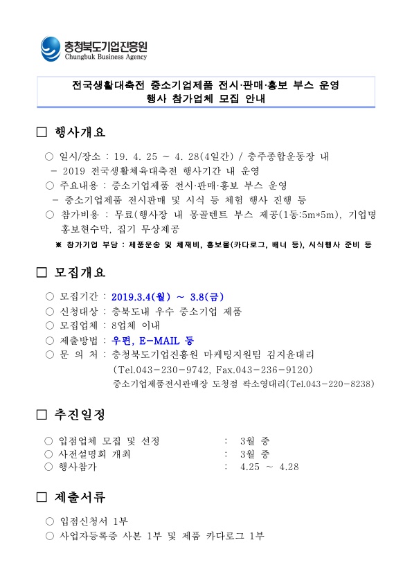 | 전국생활대축전 중소기업제품 전시·판매·홍보 부스 운영 행사 참가업체 모집 안내 | |||||