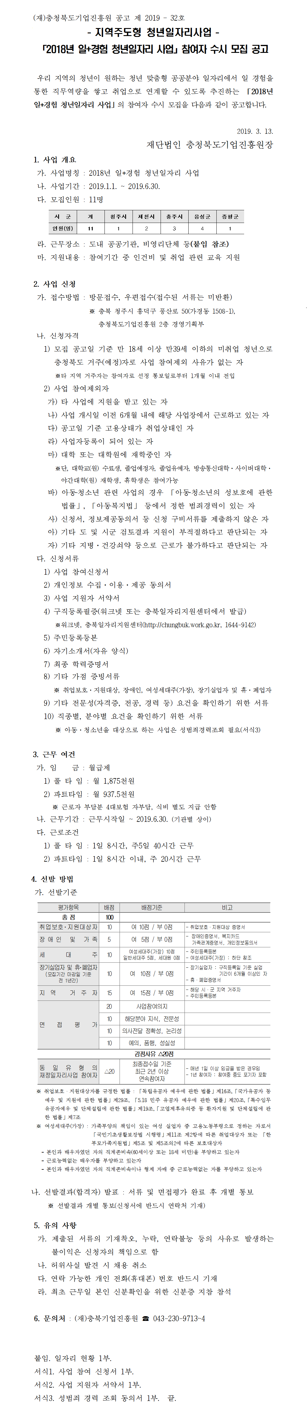 | [마감][19.03.13.기준] 2018년 일+경험 청년일자리사업 참여자 수시모집 공고 | |||||