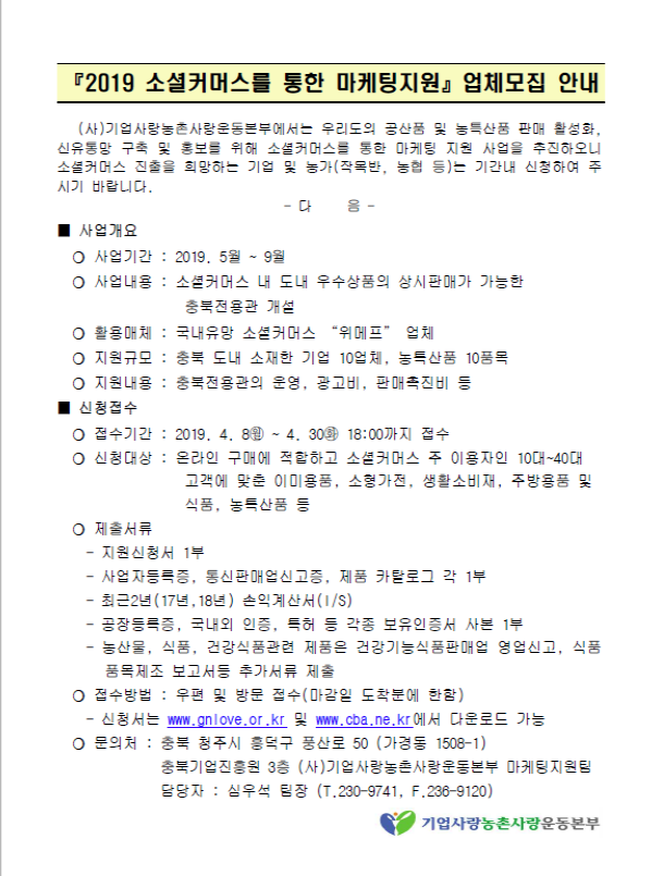 | 2019 소셜커머스를 통한 마케팅지원 업체 모집 | |||||