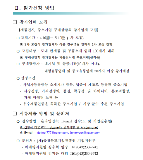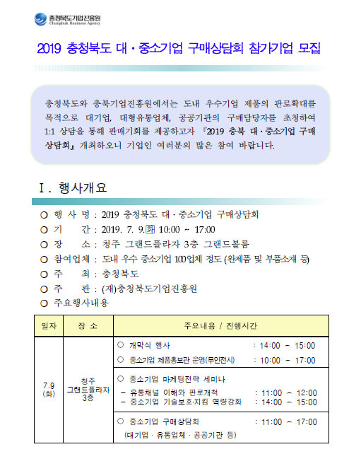 2019 충청북도 대중소기업 구매상담회 참가기업 모집