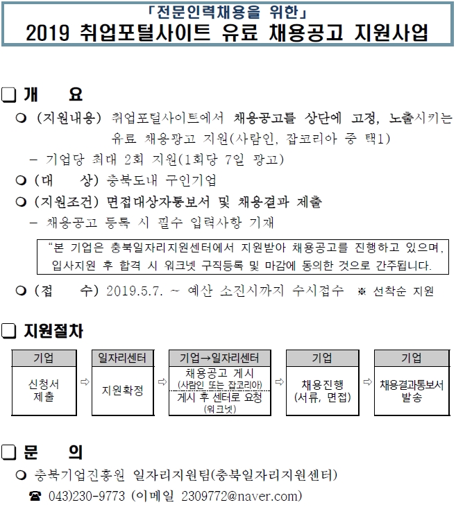 | [마감] 2019 취업포털사이트 유료 채용공고 지원사업 안내 | |||||