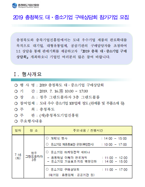 | 2019 충청북도 대중소기업 구매상담회 참가기업 추가모집 | |||||