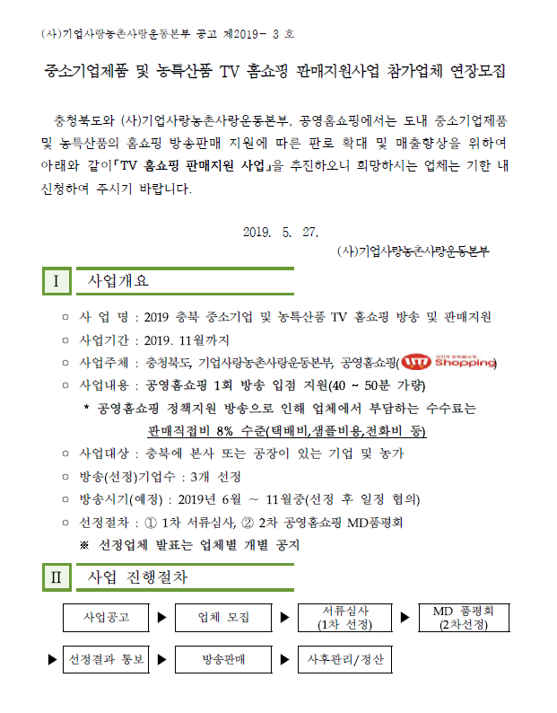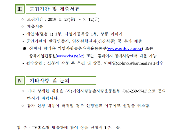 | TV홈쇼핑 입점지원 참가업체 모집 연장공고 | |||||