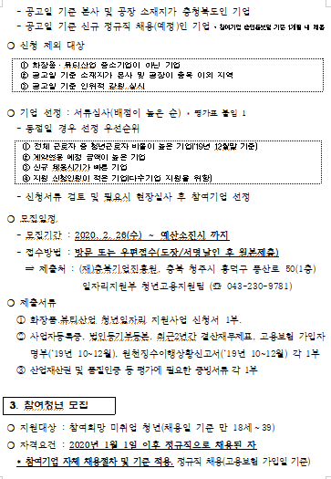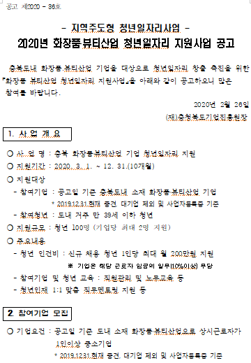 | 2020 화장품뷰티산업 청년일자리 지원사업 공고 | |||||