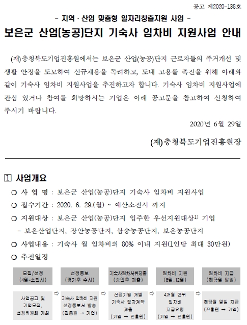 | 보은군 산업(농공)단지 기숙사 임차비 지원사업 수시모집(마감) | |||||