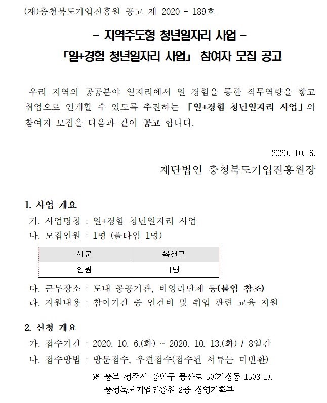 | (지역주도형 청년일자리사업) 일+경험 청년일자리사업 참여자 모집 공고 | |||||