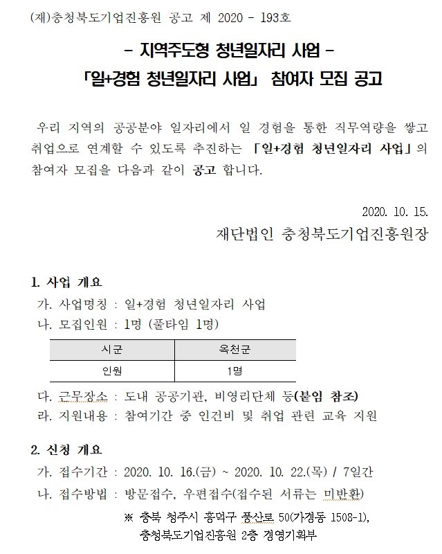 | (지역주도형 청년일자리사업) 일+경험 청년일자리사업 참여자 모집 공고 | |||||