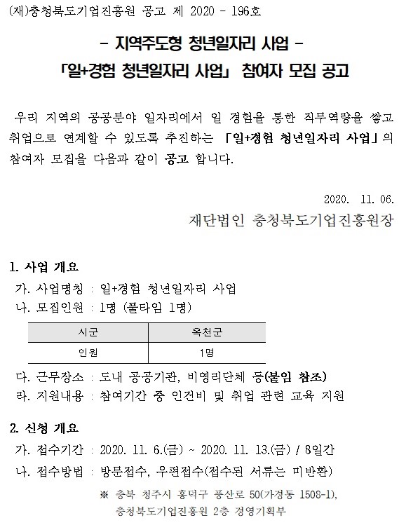 | (지역주도형 청년일자리사업) 일+경험 청년일자리사업 참여자 모집 공고 | |||||