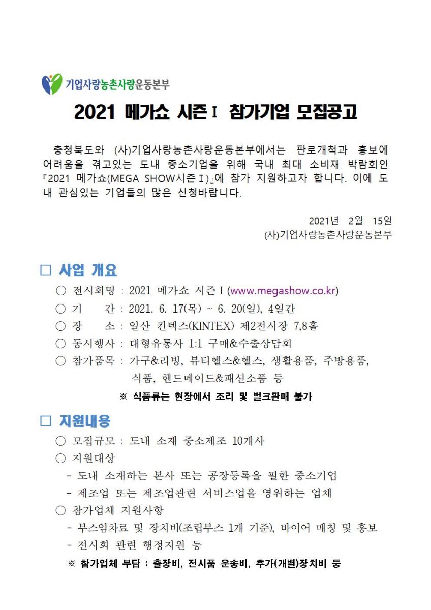 | 2021 메가쇼 시즌1 참가기업 모집 공고 | |||||
