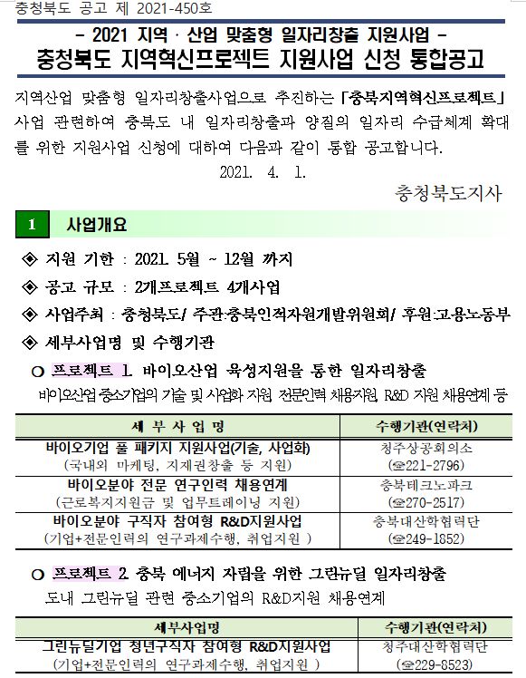 | 충청북도 지역혁신프로젝트 지원사업 신청 통합공고 | |||||