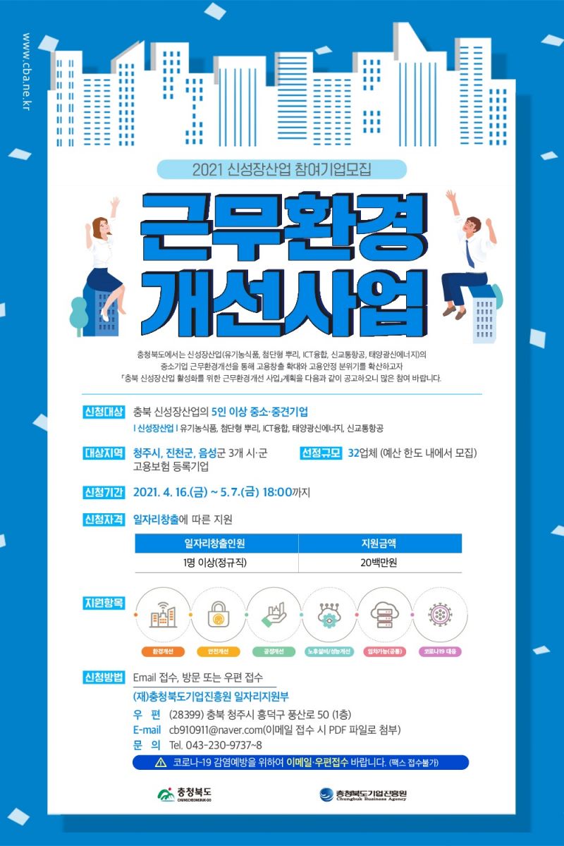 | 『2021년 충북 신성장산업 근무환경개선지원 사업』 참여기업 모집공고 | |||||