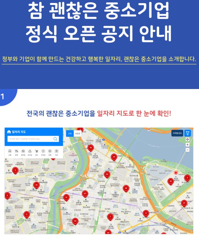 일자리지도를 통해 일자리 정보를 한눈에 파악할 수 있는 참 괜찮은 중소기업 사이트 입니다.