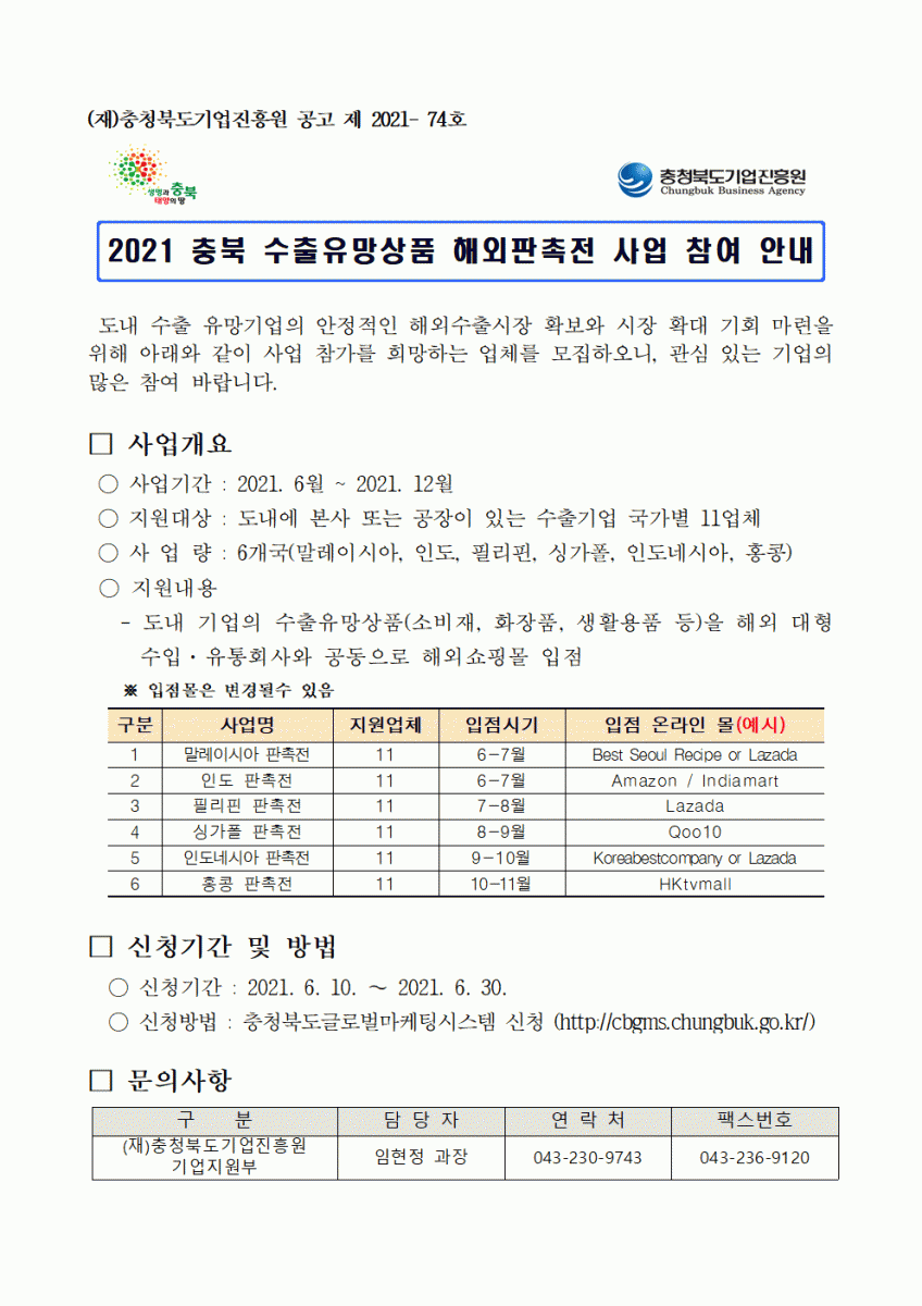 | 2021 수출유망상품 해외판촉전 사업참여안내 | |||||