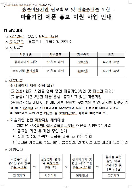 | 2021 마을기업 제품 홍보 지원 사업 안내 | |||||