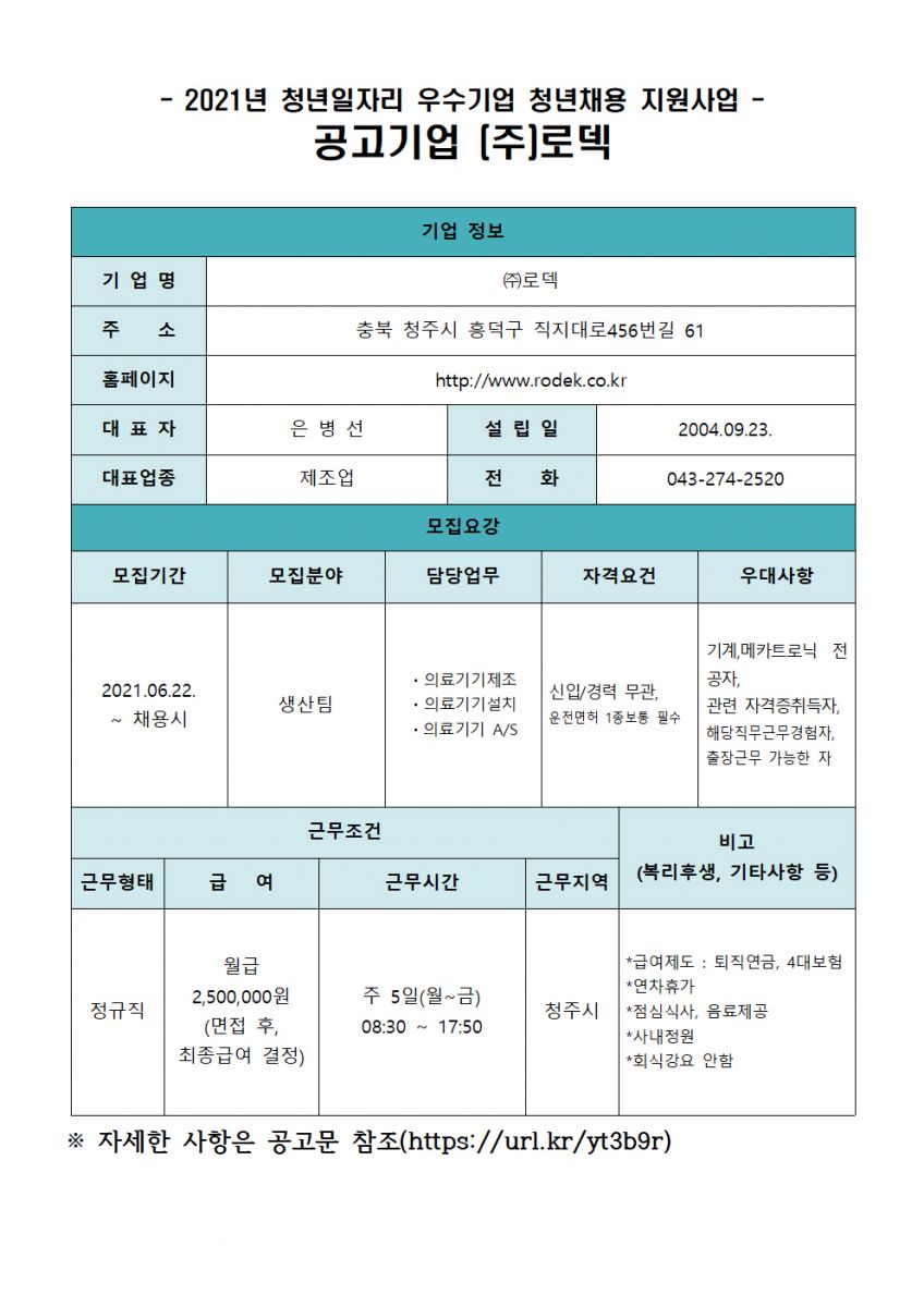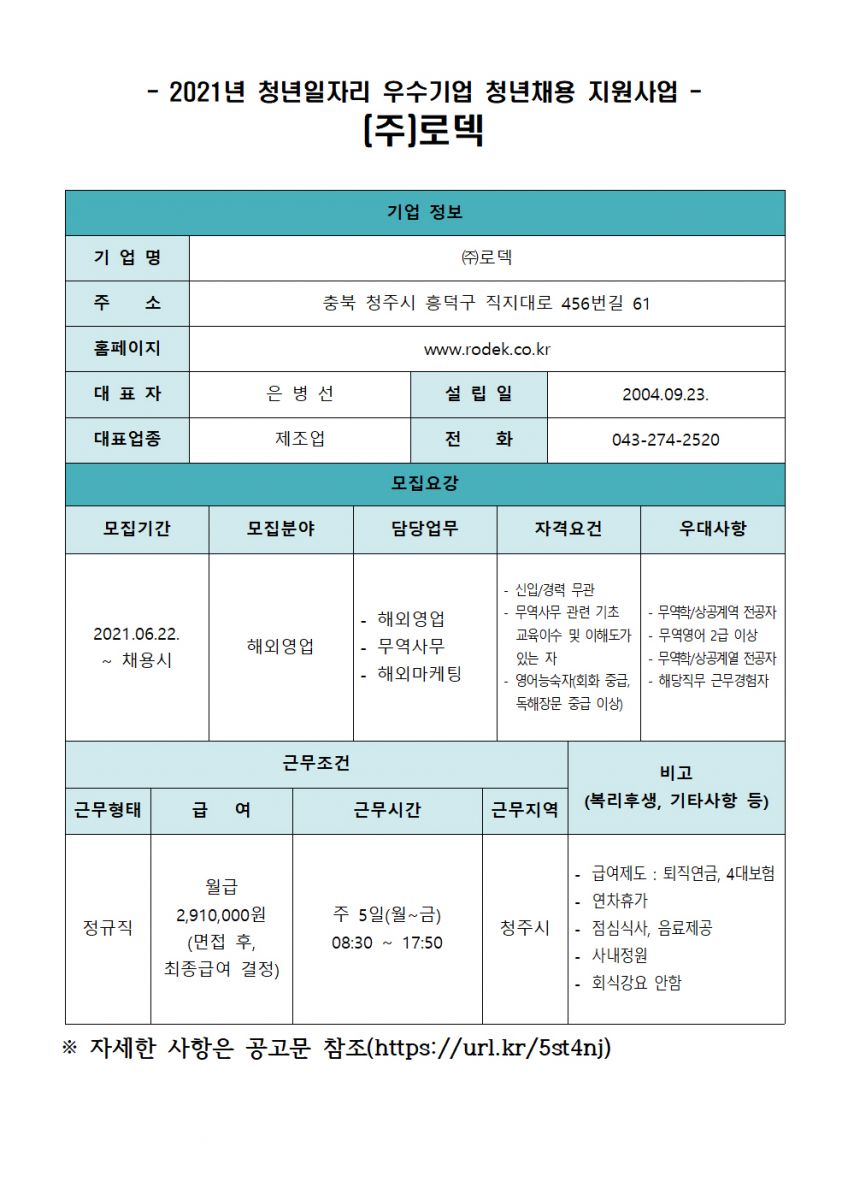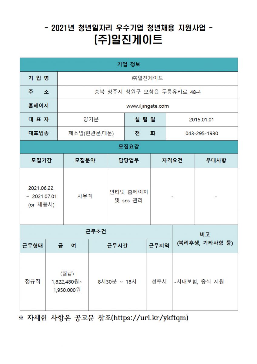 2021년 청년일자리 우수기업 청년채용 참여청년 모집
