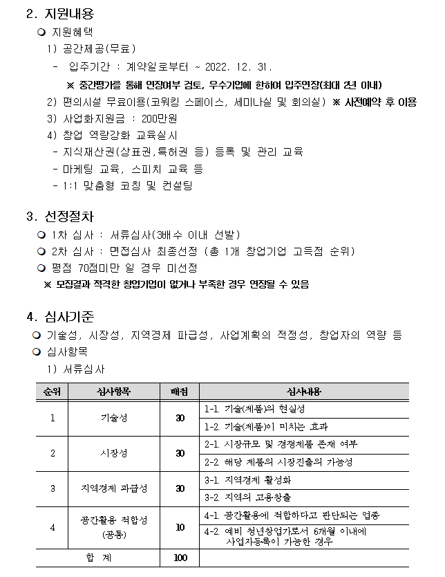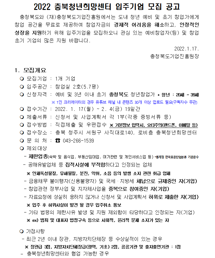 | 2022년 청년 스타트업 활성화 청년희망센터 입주기업 모집 | |||||