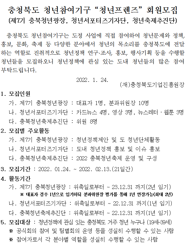 | 2022년 청년참여기구"청년프렌즈" 모집공고 | |||||