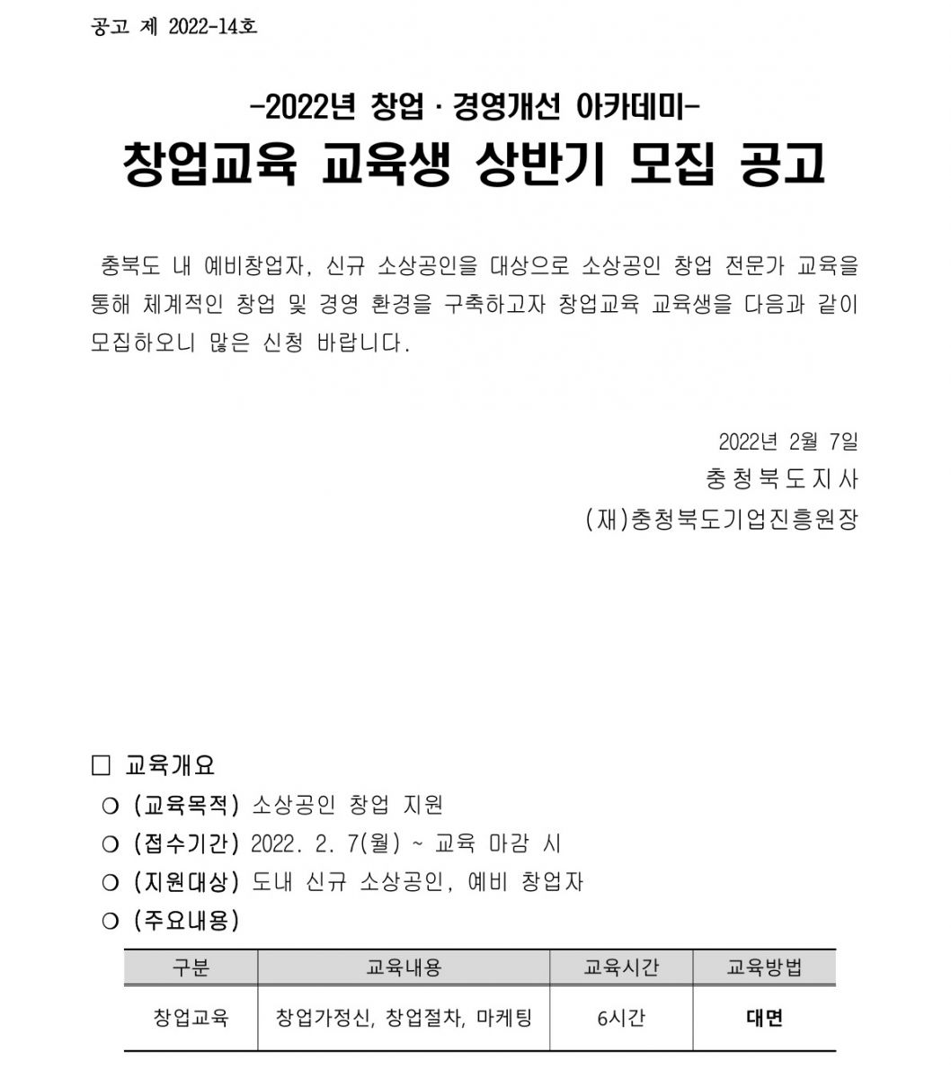 | 다음글 | 2022년 경영개선교육 교육생 상반기 모집 |