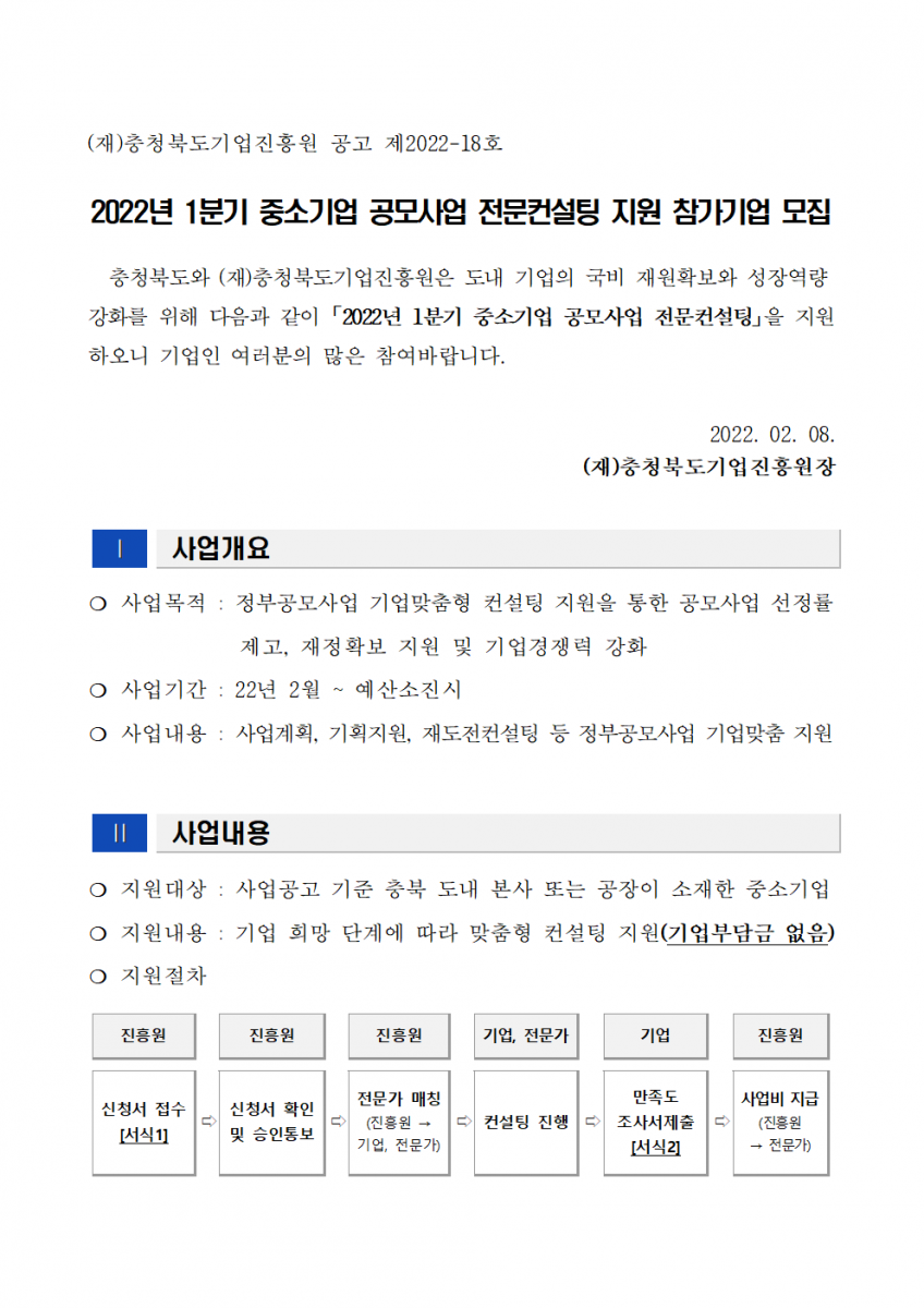 2022년 1분기 공모사업 전문컨설팅 참가기업 모집(종료)