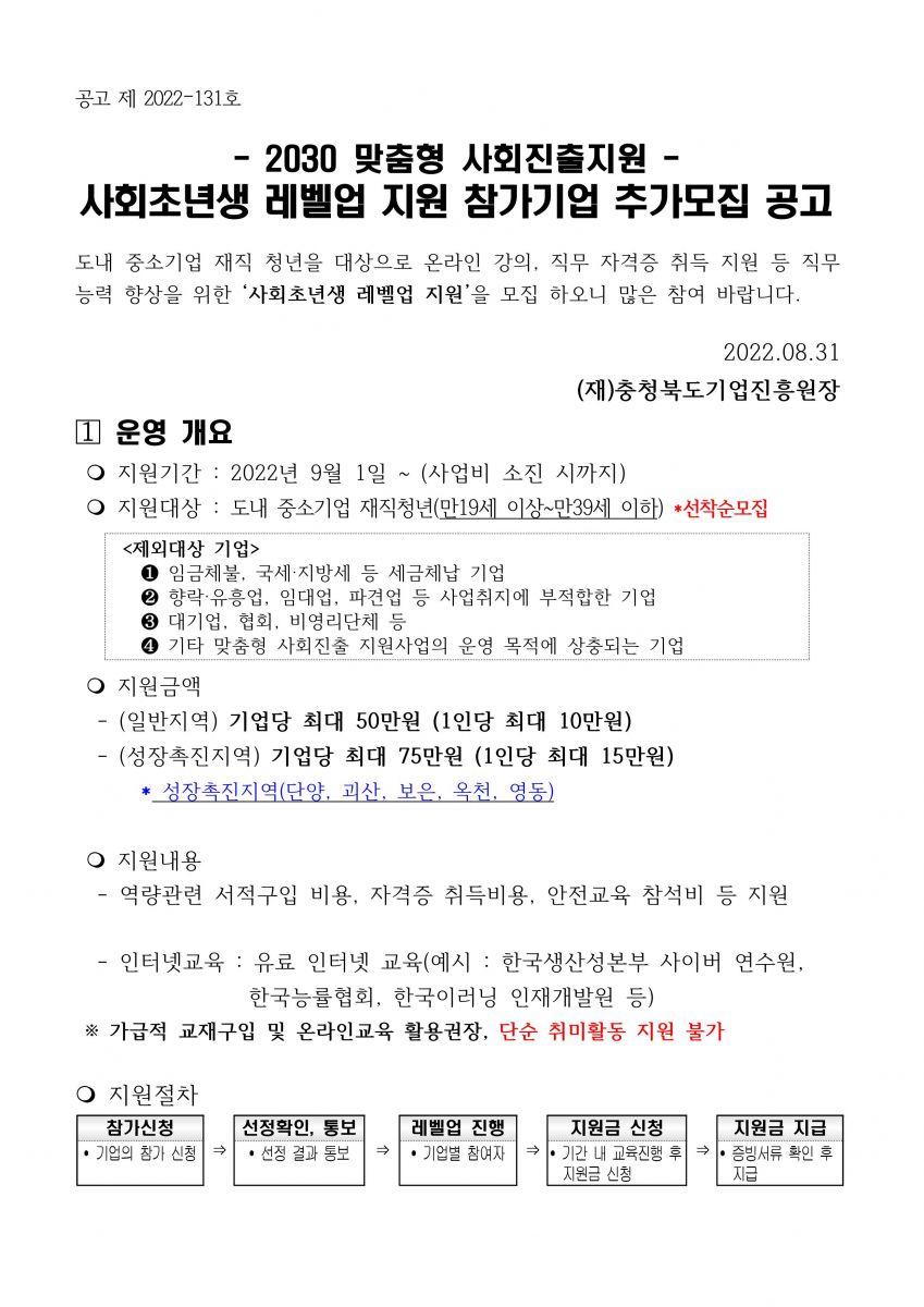 | <마감> 2022년 2030사회초년생 레벨업 지원 참가기업 모집 공고 | |||||