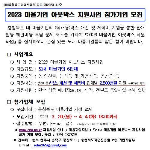 2023 마을기업 아웃박스 지원사업 참가업체 모집