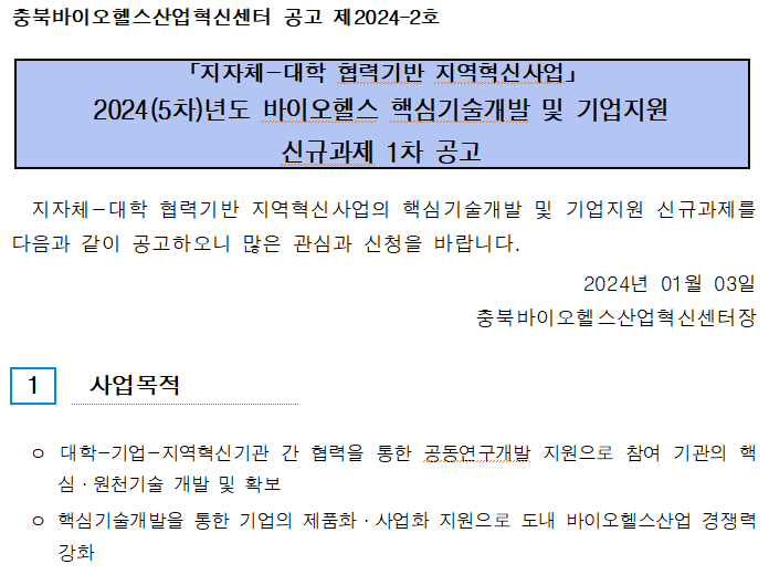 | 2024(5차)년도 바이오헬스 핵심기술개발 및 기업지원 신규과제 1차 공고 | |||||