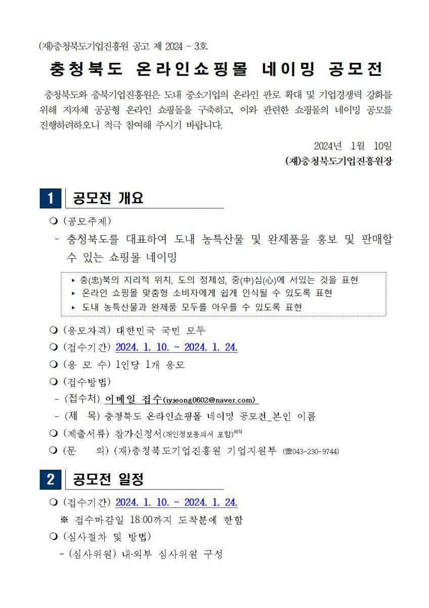 | 충청북도 온라인쇼핑몰 네이밍 공모전 응모자 모집 | |||||