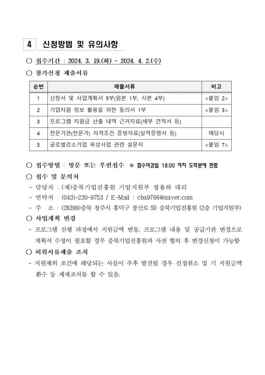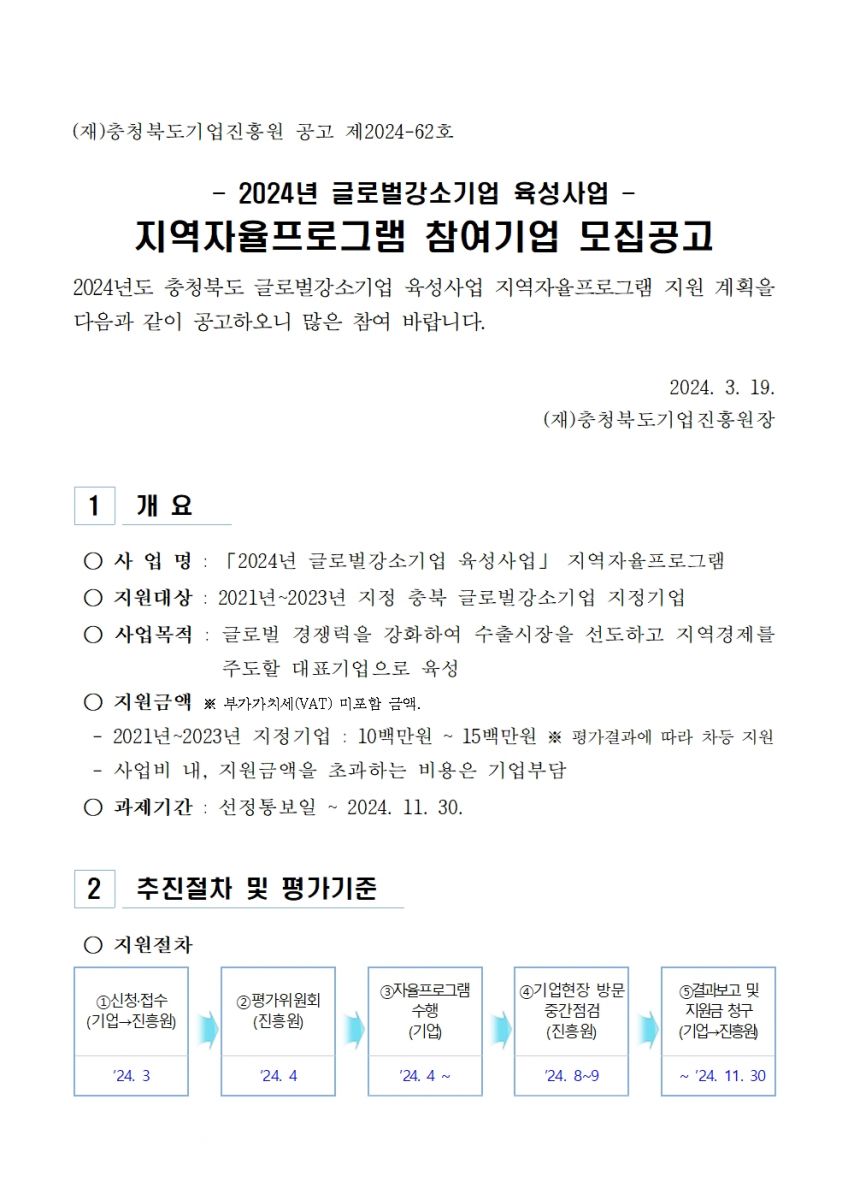 2024년도 충북 글로벌강소기업 육성사업 지역자율프로그램 모집을 아래와 같이 진행하오니